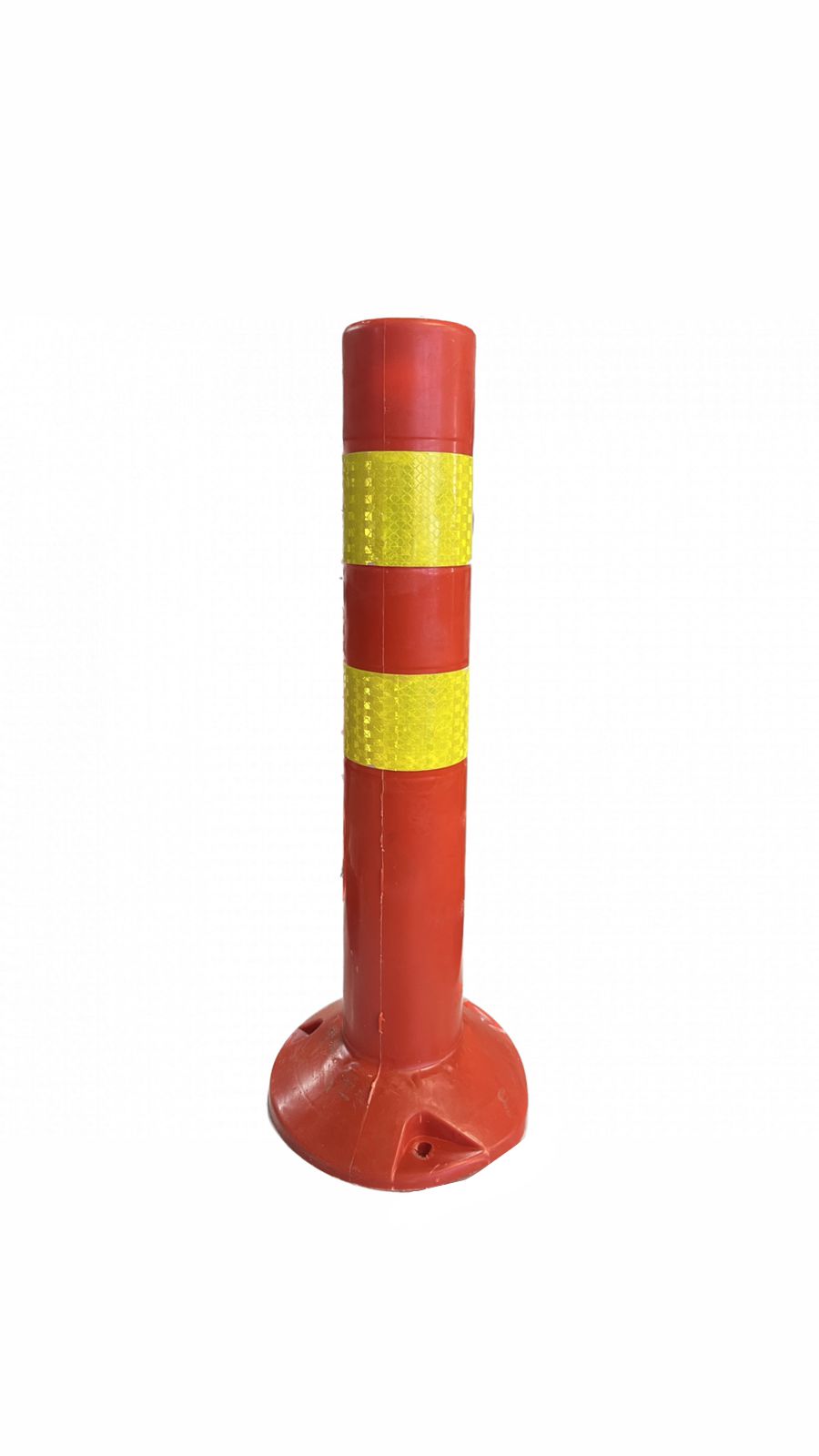 Высота: 450 мм. Вес: 0,16 кг Диаметр основания: 180 мм. Диаметр столба: 70 мм. 2 светоотражающие полосы желтого цвета 3 отверстия под крепления Для обеспечения видимости с дальнего расстояния места или быстрого заграждения парковки, части дорожного покрытия, ремонтных и строительных площадок, игрового поля применяют дорожные конусы. Сигнальные конусы и дорожные столбики играют большую роль в обеспечении безопасного дорожного движения. Данные изделия изготавливаются на современном, высокотехнологичном оборудовании. При производстве используется метод экструзии пластмасс. Наряду с этим, также при изготовлении этих изделий применяются термопласт автоматы для литья под высоким давлением. Это придает предметам высокую прочность. Данные ограничители по своим качествам подразделяются на жесткие и гибкие. Мягкие конусы и столбики изготавливают из гибкого полимера. После наезда автомобиля, изделие принимает начальное положение, и при этом наносит минимальный ущерб транспортному средству. Они переносят многократные столкновения без повреждения целостности конструкции основания. Также благодаря, используемым материалам, они устойчивы к перепадам температур (от минус 40 до плюс 40 градусов), воздействию атмосферных явлений. Основные цвета этих изделий бывают оранжевого или красного цветов. Корпус предметов покрывают пленкой с вертикальной разметкой, обладающей эффектом светоотражения. Столбики относятся к атрибутам обустройства полотна дороги. Они предназначены для разделения полос движения, обозначения предела проезжей части в дополнение нанесенной разметки. Эти ограничители используются в следующих местах: участок дорожных, строительных работ; парковки, стоянки; гостиницы, рестораны, развлекательные заведения; место дорожно-транспортного происшествия, проведения спортивных состязаний; магазины, супермаркеты; вокзалы, аэропорты, и т. п. Чтобы временно устроить заграждение парковок, стоянок, участков ремонтных и дорожных работ используют столбцы с утяжелителями. Основная задача дорожных ограничителей – обеспечение безопасности на дороге.